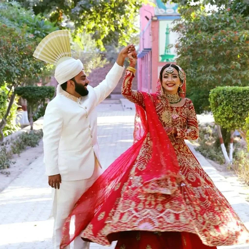 Step into your fairytale moment with this luxurious red bridal lehenga, exquisitely hand-embellished with intricate zardozi, sequins, and crystal detailing. Crafted from premium raw silk and net, this bridal masterpiece features a richly embroidered dupatta and a fully adorned lehenga that radiates tradition, grace, and opulence. Perfect for the bride who dreams of making a grand entrance