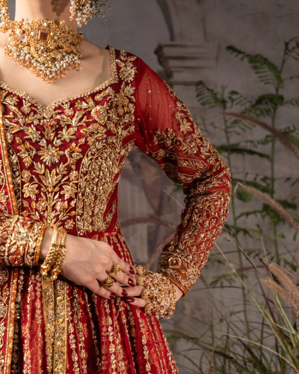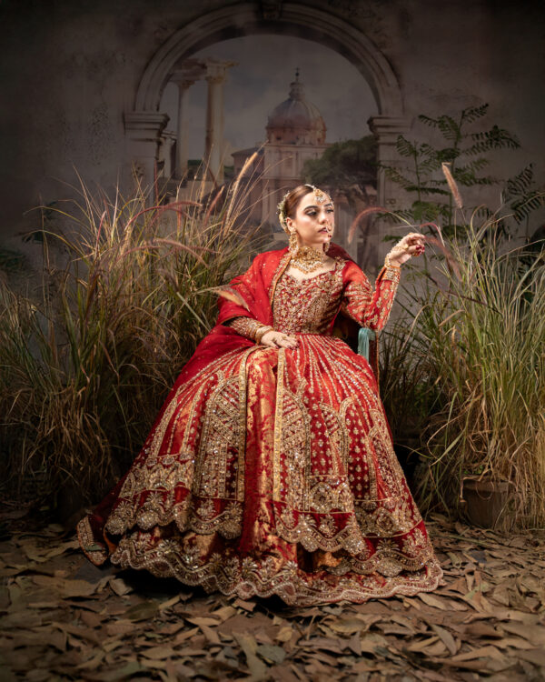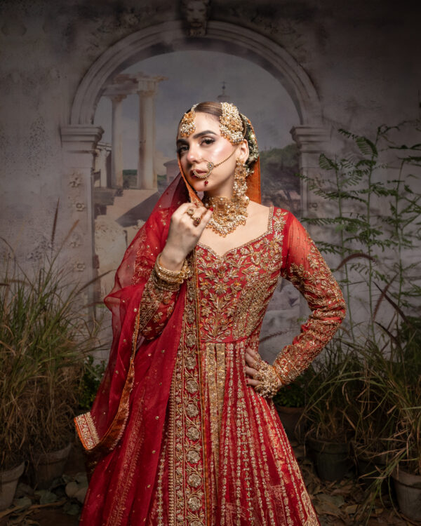 RaaéNaz is a celebration of regal beauty and timeless craftsmanship — a couture creation designed for the bride who carries grace with confidence. Every element of this ensemble reflects the perfect harmony of luxury, tradition, and artistry.