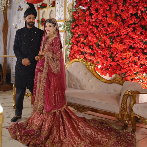 Step into your fairytale moment with this luxurious red bridal lehenga, exquisitely hand-embellished with intricate zardozi, sequins, and crystal detailing. Crafted from premium raw silk and net, this bridal masterpiece features a richly embroidered dupatta and a fully adorned lehenga that radiates tradition, grace, and opulence. Perfect for the bride who dreams of making a grand entrance